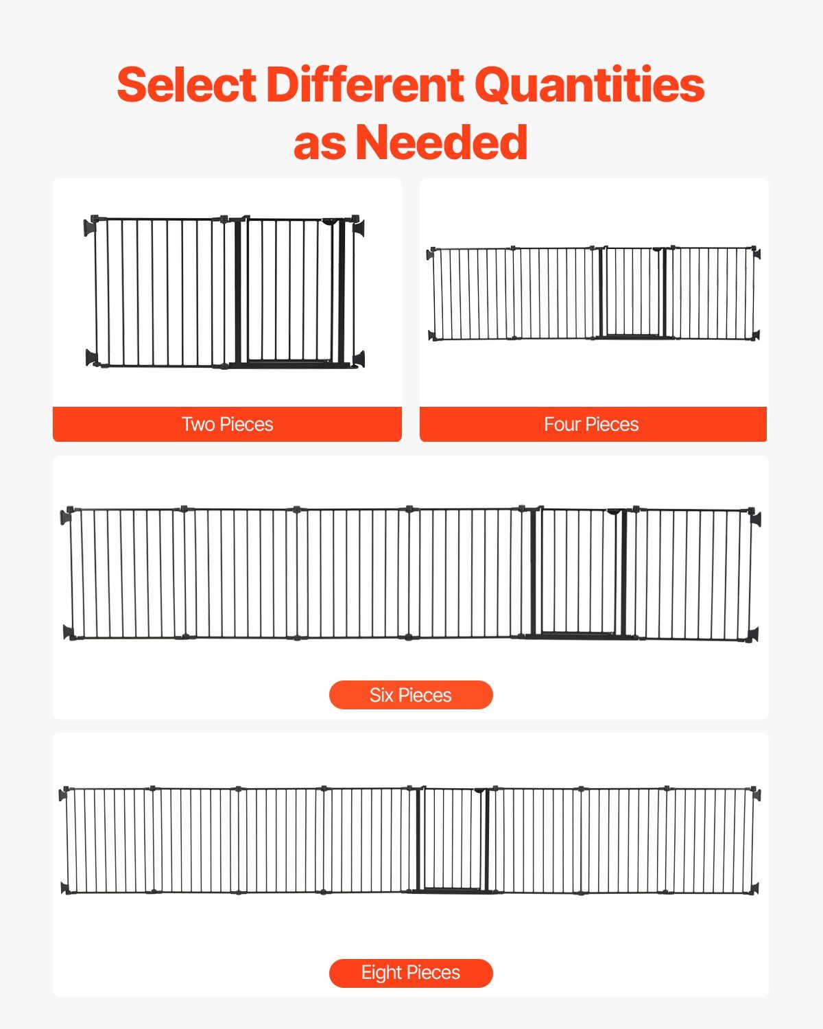 1.Extra Wide Baby Gate: With a maximum width of 192 in / 487.7 cm, this baby gate is ideal for larger spaces. Eight panels can be freely combined to create various widths and shapes, making it easy to adapt to any corner of your home. Whether it's a spacious living room or a narrower corner of a bedroom, it fits ideally